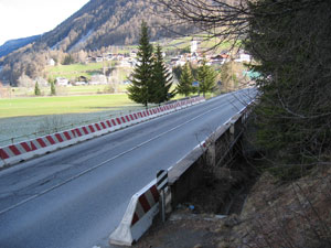 "Die mittlerweile über 50 Jahre alte Brücke über den Karlinbach ist in einem prekären Zustand, die Sicherheitsstandards werden nicht mehr erfüllt", erklärt dazu Bautenlandesrat Florian Mussner. Aus diesem Grunde werde die alte Brücke abgerissen und durch eine neue ersetzt. "Allerdings haben wir dafür gesorgt, dass der Verkehr auf dieser wichtigen Durchzugsstraße möglichst reibungslos weiterlaufen kann, und zwar auch während der Bauarbeiten", so Mussner. Dafür wurde bereits eine rund 150 Meter lange Umleitung eingerichtet, über die ab heute der Verkehr rollt.