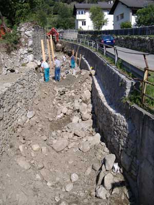 Auch mit all diesen Verbauungen wurde allerdings eine Gefahrenquelle nicht aus dem Weg geräumt. Es war dies der Bachabschnitt oberhalb des Kinderdorfs. "Dort war der Querschnitt des Bachs so klein, dass ein Hochwasser unweigerlich zum Ausufern geführt und Kinderdorf wie Brennerautobahn gleichermaßen gefährdet hätte", erläutert Rudolf Pollinger, Direktor der Landesabteilung Wasserschutzbauten. "Wir haben deshalb seit Frühjahr 2007 das Bachbett in diesem Abschnitt tiefer gelegt und die Schutzmauer am rechten Ufer saniert", so Pollinger.