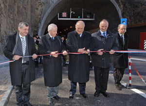 (LPA) Das erste Teilstück der Umfahrung von Auer ist heute (11. März) von Landeshauptmann Luis Durnwalder und Landesrat Florian Mussner eröffnet worden. "Damit ist der erste Schritt hin zu einer spürbaren Entlastung von Auer gesetzt worden", so Durnwalder. Angesetzt wurde heute auch zum zweiten Schritt: Mit der ersten Sprengung für den St.-Daniel-Tunnel wurde das zweite Teilstück in Angriff genommen.