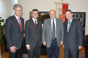 (LPA) Die neue Spitze des Raiffeisenverbands hat heute (11. März) Landeshauptmann Luis Durnwalder einen Antrittsbesuch abgestattet. Im Gespräch ging es in erster Linie um die zu erwartenden Folgen der weltweiten Wirtschaftskrise für Südtirol und geeignete Maßnahmen zu deren Abfederung. "Dabei kommt den Genossenschaften eine wichtige Rolle zu", betonte der Landeshauptmann.