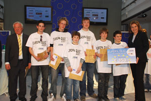 Inspektorin Erica Fassa vom Schulamt in Bozen lobte den Einsatz von Schülern und Lehrpersonen, der sich an überdurchschnittlich guten Leistungen zeigte. Politische Bildung ist ein Fachbereich, in dem vor allem Buben hervorragende Leistungen aufweisen. Siegreich und damit Gewinner einer Reise nach Amsterdam war das Team Orange mit (aus Südtirol) David Fliri vom Humanistischen Gymnasium Meran, Christian Runer von der Fachschule Laimburg und Kurt Aichhorner von der Handelsoberschule Bozen. Zweitplatzierte das Team Weiß mit den drei Südtirolern Julian Ansaloni von der Mittelschule der Franziskaner in Bozen, Christian Kaserer von der Landesberufsschule Savoy in Meran und Hannes Pircher von der Gewerbeoberschule Bozen; sie erhielten jeweils einen Gutschein von 150 Euro pro Kopf. Der dritte Preis (Gutscheine von je 100 Euro) ging an das Team Grün mit Moritz Reiterer vom Realgymnasium Meran, Jakob Stanzel von der Landesberufsschule Savoy und Alex Deltedesco vom Realgymnasium Brixen.