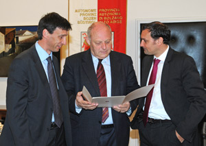 Noch vor der Sitzung der Landesregierung hat Durnwalder Stefan Rubner, Präsident der Rubner-Gruppe und Stiftungsrat der "Privatstiftung Hermann Rubner", sowie Thomas Koler, Geschäftsführer von Rubner-Haus, heute im Palais Widmann in Bozen empfangen, um das Projekt zum Wiederaufbau in den Abruzzen kennenzulernen. Dabei wurde dem Landeshauptmann zunächst das Modell eines Einfamilienhauses präsentiert, von denen die "Privatstiftung Hermann Rubner" zwei Exemplare Opfern des Erbebens in der Provinz L'Aquila kostenlos zur Verfügung stellt. Die Häuser wurden nach Bekanntwerden der Katastrophe sofort produziert. "Sobald entschieden ist, in welcher Ortschaft die Häuser errichtet werden sollen, werden dies die Rubner-Monteure tun", so Durnwalder. Danach wären diese zudem imstande, bis zu tausend Häuser innerhalb von nur drei Monaten zu errichten.