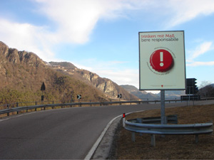 "Die Gefährdeten stärken und zu einem bewussten Umgang mit Alkohol führen ist unser Anliegen", betonte der Gesundheitslandesrat. Er werde, erklärte Theiner, manchmal gefragt, ob die auf drei Jahre angelegte Kampagne nicht zu teuer sei: "Wir haben 2007 162.000 Euro ausgegeben, 2008 waren es 200.000 und heuer sind es 87.000: diese rund 450.000 Euro für die Bewusstseinsbildung sind für die öffentliche Hand nicht eine Option, sondern geradezu Pflicht", legte der Landesrat dar. Der dritte Teil der Präventionskampagne besteht aus Radiospots und Inseraten. "Es braucht Alternativen zur gängigen Festkultur," erklärt etwa Schulamtsleiter Peter Höllrigl in einem Radiospot: "Mehr Spaß, weniger Alkohol." Die Printwerbung und die Werbung im öffentlichen Raum, etwa auf Straßenschildern, zeigt einen roten Flaschenverschluss mit weißem Rufezeichen und dem Ratschlag "trinken mit Maß" sowie ein Bierglas, aus dem Gras wächst: "es wächst was Neues".