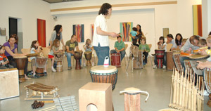 Im Stadtmuseum Bruneck war es der Trommel-Workshop, bei dem kleine und große BesucherInnen von Max Castlunger eingeladen worden sind, sich von den kraftvollen Bildern von Vittorio Matino inspirieren zu lassen und in Form von Trommelmusik umzusetzen.