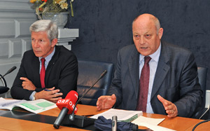 Besorgt zeigten sich die Landesregierungsvertreter über die Abnahme der milchproduzierenden Berglandwirtschaftsbetriebe. "Im laufenden Milchwirtschaftsjahr 2008/09 wird der Auszahlungspreis vorrausichtlich noch halten, aber in den kommenden Jahren wird er zunehmend dem rauen Wind des Weltmarktes ausgesetzt sein", so Berger. Er spricht sich daher für eine weitere Steigerung der Veredelungsquote und eine noch stärkere Kooperation zwischen den bestehenden Verarbeitungs- und Vermarktungsbetrieben aus. In diesem Zusammenhang erinnerte Berger heute daran, dass die ehemalige Alpungsprämie in leicht abgeänderter Form als Tiergesundheitsprämie in Brüssel genehmigt und somit bis zum Jahr 2013 gesichert werden konnte.