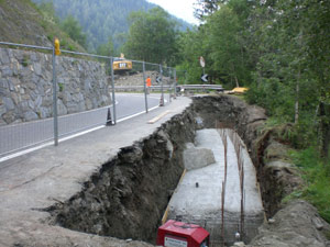 Zudem wird eine bestehende Betonmauer auf einer Länge von 56 m mittels Zugankern auf einem Lastverteilungsbalken verstärkt. Auf dem Abschnitt wird auch der Randbalken erneuert.