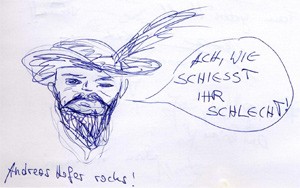 (LPA) Wie Andreas Hofer selbst scheidet auch die Hofer-Ausstellung im Touriseum auf Schloss Trauttmansdorff in Meran die Geister. In den Gästebüchern zur Sonderausstellung "Der mit dem Bart..." reichen die Reaktionen von Lob für Kreativität, Ironie und Hintergründigkeit der Schau bis hin zu einem schlichten "grottenschlecht".