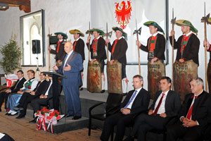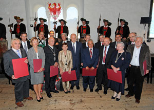 LPA - „Zahlreiche Männer und Frauen, die nicht aus Südtirol stammen, haben sich an verschiedenen verantwortlichen Stellen mit viel Einsatz und persönlichen Opfern für Südtirol engagiert, deshalb gebührt ihnen Dank“, sagte Landeshauptmann Luis Durnwalder heute, 5. September, bei der ersten Verleihung der Verdienstorden des Landes Südtirol im Beisein der Landesregierung auf Schloss Tirol. Vergeben wurde auch der Minderheitenpreis des Landes.