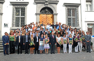 (LPA) Fast hundert Maturanten haben im Frühsommer ihre Abschlussprüfung mit Höchstnote bestanden. Heute (9. September) gab's die Belohnung dafür, und zwar in Form einer Ehrung durch Landeshauptmann Luis Durnwalder und die Schullandesräte Sabina Kasslatter Mur, Florian Mussner und Christian Tommasini.