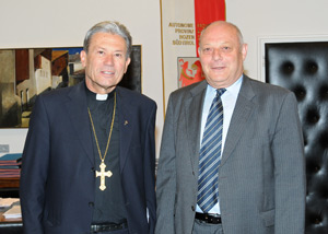 Begleitet von den Generalvikaren Josef Matzneller und Giuseppe Rizzi war Golser zu seinem Antrittsbesuch ins Palais Widmann in Bozen gekommen, um mit dem Landeshauptmann aktuelle gesellschaftliche Themen aber auch Fragen der Zusammenarbeit zwischen Land und Kirche zu erörtern. Breiten Raum nahm dabei die Diskussion der Entwicklungen rund um das Zusammenleben der Sprachgruppen in Südtirol und die Folgen der Einwanderung ein. "Gerade in den letzten Monaten hat es eine Entwicklung gegeben, die wir mit Sorge betrachten, weil verschiedenste Gruppen auf allen Seiten im Schüren von Konflikten den eigenen Vorteil wittern", so Durnwalder nach dem Treffen. Es gelte, so der Landeshauptmann, diesem Trend von Seiten der gemäßigten und vernünftigen Kräfte mit Argumenten gegenzusteuern. "Schließlich ist die kulturelle Vielfalt unseres Landes ein Reichtum, den wir in Südtirol selbst erst wertschätzen lernen müssen", erklärte Durnwalder.
