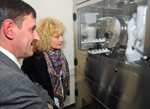 (LPA) Innovationslandesrätin Barbara Repetto hat heute (12. November) dem in der Bozner Industriezone angesiedelten Health Robotics einen Besuch abgestattet: Der vor drei Jahren gegründete Betrieb stellt nach einem weltweit einzigartigen Verfahren Roboter her, die individuell abgestimmte Medikamente zubereiten können.