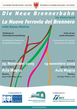 (LPA) Die Machbarkeitsstudie zum Ausbau der Brennereisenbahn im Unterland liegt nun vor. Die Ergebnisse werden allen Interessierten vorgestellt, und zwar am kommenden Donnerstag, 19. November, um 19.00 Uhr in der Aula Magna im Sepp-Thaler-Weg 2 in Auer.
