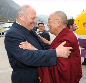 LH Durnwalder empfängt den Dalai Lama am Flughafen Bozen