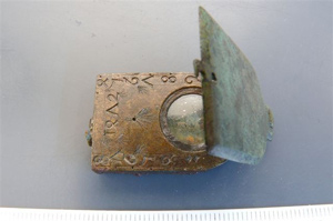 LPA - Keramikteile mit Stempelverzierung und eingeritzten Texten sowie zahlreiche Münzen aus den verschiedenen Jahrhunderten hat das Landesamt für Bodendenkmäler letzthin im Zwingerbereich bei Schloss Bruneck zu Tage gefördert. Gefunden wurde auch eine vollständig erhaltene Taschensonnenuhr aus dem Jahr 1472, eines der ältesten bekannten Stücke dieser Art.