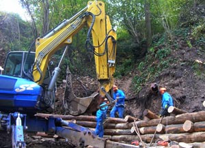 Entsprechend musste das Bachbett des Seitengrabens verbaut werden, und zwar nach einem Projekt von Hansjörg Prugg vom Landesamt für Wildbach- und Lawinenverbauung Süd. "Wir haben uns für insgesamt 16 Konsolidierungssperren aus Eichenrundholz entschieden, die für eine größere Stabilität im Seitengraben sorgen sollen", so der Projektant.