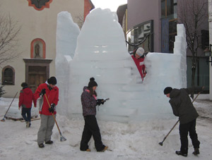 (LPA) 20 Kubikmeter Eis haben Schüler der Berufsschule für das Kunsthandwerk in St. Ulrich und der ebenfalls dort angesiedelten Kunstschule zu Skulpturen verwandelt, die nun im Zentrum von St. Ulrich zu bewundern sind. Morgen, Freitag, werden die besten Skulpturen prämiert.