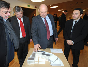 LPA - Rund 560 Schüler können seit Anfang Jänner im neuen Gebäude des italienischen Gymnasiums „Pascoli“ in Bozen lernen. Landeshauptmann Luis Durnwalder und die Landesräte Florian Mussner und Christian Tommasini haben sich die zu Jahresende 2009 fertig gebaute, 52.800 Kubikmeter große und rund 21 Millionen Euro teure Schule heute, 23. Jänner, angeschaut.
