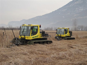 Bereits in vollem Gange ist die Schilfmahd im Süden des Sees. "Die tiefen Temperaturen der letzten Tage erleichtern die Arbeiten einer Schweizer Firma, die das Schilf mit Hilfe von speziellen Raupenfahrzeugen abmäht, sammelt und aus dem Biotop transportiert", heißt es aus dem Forstinspektorat Bozen I. Die Pflegearbeiten betreffen eine Fläche von rund 15 Hektar und werden noch diese Woche fortgesetzt.