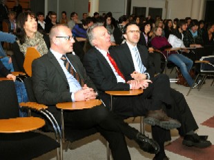 Die Landesräte Tommasini und Bizzo haben sich die Vorstellungen der Unternehmensideen der Schüler auf Deutsch, Italienisch und Englisch mit Interesse angehört. Durch das Projekte würden die besten kreativen Energien der Jugendlichen und somit der künftigen Unternehmer angeregt, so die Landesräte.