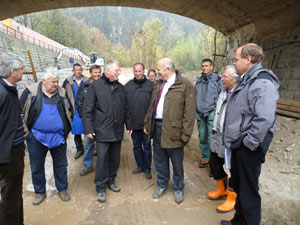Bei seiner Baustellenrunde lobte Landeshauptmann Durnwalder die gute Zusammenarbeit zwischen der Wildbachverbauung und den betroffenen Gemeinden, den Verantwortlichen von Trauttmansdorff sowie der Abteilung Zivilschutz, die für die Errichtung der Pegelmessstelle in der Passer mit zuständig ist.