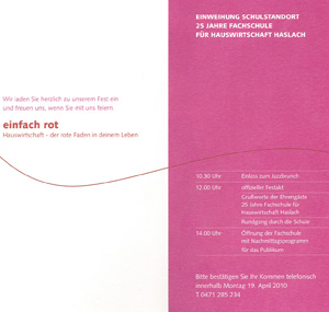 "Hauswirtschaft als roter Faden im Leben" lautet das Motto, unter das die Fachschule für Hauswirtschaft Haslach ihren Festtag gestellt hat; dieser beginnt um 10.30 Uhr mit einem Jazz-Brunch und klingt nach dem Festakt um Punkt 12 Uhr mit einem bunten Nachmittagsprogramm für alle Interessierten aus. Als Ehrengäste mitfeiern werden neben Landeshauptmann Luis Durnwalder auch der Direktor der Landesabteilung für land-, forst- und hauswirtschaftliche Berufsbildung, Stefan Walder, sowie der Obmann des Südtiroler Bauernbundes, Leo Tiefenthaler.