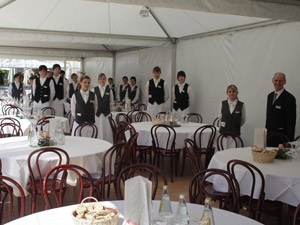 Zwei Tage lang haben sich Weinfachleute aus ganz Europa auf Einladung von Alois Lageder im historischen Rahmen von "Càson Hirschprunn" über ihr Fachgebiet ausgetauscht. Damit die Gäste auch kulinarisch nicht zu kurz kommen, wurde ein Büfett zur Verkostung verschiedener Südtiroler und italienischer Speisen aufgebaut. Den Schülern der 2. Berufsfachschule Service der LBS "Savoy" oblag es, unter der Leitung von Fachlehrer Konrad Thaler für einen reibungslosen Ablauf im Restaurationsbereich zu sorgen. "Für die Schüler war die Veranstaltung eine große Herausforderung und sie hat ihnen einen guten Einblick in die Arbeitswelt geboten", betont Thaler, der sich über das bei der Veranstaltung erhaltene Lob für Einsatz und Durchhaltevermögen seiner Schüler sehr erfreut gezeigt hat.