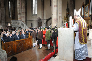 Mit den Angehörigen des Altlandeshauptmanns, politischen Weggefährten und höchsten politischen Vertretern aus Südtirol, seinen Nachbarländern, aus Wien und Rom sowie mit tausenden Gläubigen hat Bischof Golser heute den vom durch andere Bozner Chöre erweiterten Domchor musikalisch gestalteten Trauergottesdienst für Altlandeshauptmann Magnago gefeiert. "Das irdische Zelt des Altlandeshauptmanns ist nun abgebrochen worden", betonte Golser in Anlehnung an den Apostel Paulus und dessen in dem als Lesung vom ehemaligen persönlichen Referenten Magnagos, Karl Rainer, vorgetragenen zweiten Brief an die Korinther. Die Hoffnung sei, dass dieses irdische Zelt durch eine ewige Wohnung im Himmel ersetzt werde, so der Bischof.