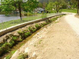 (LPA) In ruhigen Zeiten sieht er aus wie ein harmloses Rinnsal, nach heftigen Regenfällen hat der Pfalzner Bach am Issinger Weiher aber schon für Überschwemmungen gesorgt. "Zudem hat der Bach oft viel Material in den Weiher geschwemmt, sodass der Badebetrieb tagelang eingestellt werden musste", erklärt Rudolf Pollinger, Direktor der Landesabteilung Wasserschutzbauten, die nun Abhilfe geschaffen hat.