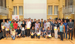 LPA – Südtirols Oberschülerinnen und Oberschüler haben sich auch in diesem Schuljahr bei den Mathematik-, Informatik-, Physik- und Chemie-Olympiade wacker geschlagen. Besonders gute Leistungen brachten 46 Schüler. Sie wurden heute (8. Juni) im Bozner Palais Widmann durch Landesrätin Sabina Kasslatter Mur und Schulamtsleiter Peter Höllrigl dafür ausgezeichnet.