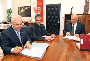 (LPA) Im Vinschgau, im Puster- und Eisacktal übernimmt das Land weitere Staatsimmobilien. Die Übernahme ist von Landeshauptmann Luis Durnwalder und den Spitzen der staatlichen Liegenschafts-Agentur besiegelt worden. Sie ist Teil des umfassenden Tauschgeschäfts, in dem der Staat Militärareale an das Land abtritt und im Gegenzug Wohnungen erhält, erfolgt diesmal allerdings kostenlos.
