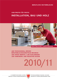 Das Angebot an beruflicher Weiterbildung und die Meisterkurse für das Schuljahr 2010/11 sind in den Broschüren gesammelt, die für die Fachbereiche Metall, Kfz, Elektrotechnik und Elektronik; Installation, Bau und Holz; Hotel, Gastgewerbe und Ernährung; Handel, Verwaltung und Floristik; Grafik, Medien und Kunsthandwerk; Bekleidung, Gesundheit und Körperpflege; Betreuung, Erziehung und Pflege sowie EDV und IT aufgelegt worden sind. Neu hinzugekommen sind in diesem Jahr Kurse für Menschen mit individuellen Bedürfnissen. Sie sind in der Broschüre "Arbeitshaltung, Kommunikation, EDV und Bewerbung – Stärken erkennen und nutzen" zu finden.