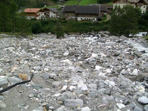 Von den Unwettern betroffen waren, wie Mauro Spagnolo, Direktor des Landesamts für Wildbach- und Lawinenverbauung West, berichtet, gleich neun Bäche im Burggrafenamt und im Vinschgau. So hat Material aus einem Seitengraben der Plima in Martell nicht nur die Landesstraße verlegt, sondern auch die Plima selbst, die nun von der Wildbachverbauung ausgebaggert wird. Auch der Karl- und der Pfossentalbach in Schnals haben große Mengen Material mitgeführt. "Das Material hat die Zufahrt zum Eishof im Pfossental unpassierbar gemacht und ist bis in den Schnalser Bach gelangt", so Spagnolo. Von dort wurden Sand und Geröll in die Etsch getragen, deren Bett teilweise verlegt worden ist. "Hier werden wir uns im Herbst der Schäden annehmen", so der Amtsdirektor.
