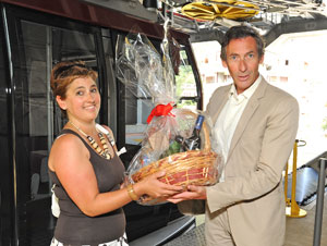 LPA - Wie beliebt die neue Rittner Seilbahn ist, beweisen die steigenden Gästezahlen, die heute, 25. August, die Millionengrenze überschritten haben. Mobilitätslandesrat Thomas Widmann hat den ein-millionsten Fahrgast der neuen Rittner Seilbahn mit einem Geschenkskorb mit Südtiroler Qualitätsprodukten an der Bozner Talstation überrascht.