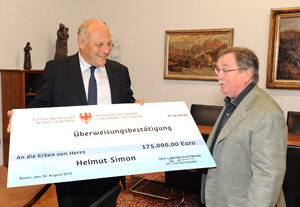 Aufgrund der Divergenzen hat es fast 20 Jahre gedauert, bis sich das Land mit den Erben des mittlerweile verstorbenen Helmut Simon auf eine Vergütung in Höhe von 175.000 Euro einigen konnte. Der jahrelange Rechtsstreit ist heute mit der symbolischen Übergabe dieser Summe an Rechtsanwalt Rudolph zu Ende gegangen. "Es ist ein langer und steiniger Weg, der heute zu Ende geht, und jetzt ist alles erledigt und wunderbar", so Rudolph heute im Palais Widmann in Bozen. Und auch für Landeshauptmann Durnwalder ist der Abschluss der Streitsache ein wichtiger Schritt: "Damit kehrt endlich Ruhe rund um den Fund des Ötzi ein", so der Landeshauptmann.