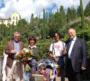 Mit Mann Alessandro und Sohn Luca Maria hat Monika Di Cola heute den Gärten von Schloss Trauttmansdorff einen Besuch abgestattet - den ersten übrigens. An der Kasse erwartet wurde sie von Landeshauptmann Durnwalder persönlich, der der dreimillionsten Besucherin der Gärten einen Blumenstrauß und einen Geschenkkorb mit Produkten der Laimburg überreicht hat. "In neun Jahren drei Millionen Besucher verzeichnen zu können, ist nicht nur ein Erfolgserlebnis, sondern auch ein Ansporn, weiter in die Infrastruktur und den Service des Gartens zu investieren, vor allem auch angesichts des bevorstehenden Zehn-Jahre-Jubiläums", so Durnwalder.