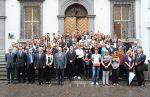 LPA - Für ihren Einsatz und Fleiß haben 95 Maturanten und Maturantinnen, die die Oberschule mit Höchstnote abgeschlossen haben, heute, 7. September, im Merkantilgebäude in Bozen eine kleine Belohnung bekommen. Landeshauptmann Luis Durnwalder, die Schullandesräte Sabina Kasslatter Mur und Christian Tommasini sowie Landesrat Hans Berger gratulierten den Jugendlichen und übergaben ihnen ein Geschenk als Anerkennung für ihre herausragenden schulischen Leistungen.