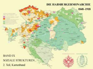„Die Gesellschaft der Habsburgermonarchie im Kartenbild. Verwaltungs-, Sozial- und Infrastrukturen. Nach dem Zensus von 1910“ – so lautet der Titel des gerade im Verlag der Österreichischen Akademie der Wissenschaften erschienenen Kartenwerks. Es ist Band 9,2 der Reihe „Die Habsburgermonarchie 1848-1918“, der seine Ergänzung in einem bald erscheinenden Textband (Band 9,1 der genannten Reihe) finden wird.