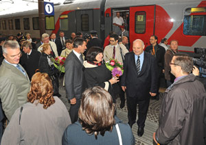 "Auf diesen Moment haben wir lange hingearbeitet, vor allem in Gesprächen mit dem Präsidenten der russischen Eisenbahnen, Vladimir Jakunin", so Landeshauptmann Durnwalder, der heute mit Landesrat Widmann, Merans Bürgermeister Günther Januth, Vertretern der Meraner Borodyne-Stiftung und der Böhmischen der Stadtkapelle Bozen Jakunins Frau auf dem Bahnhof in Bozen ebenso willkommen heißen konnte, wie eine von Senator Sergey Sheblygin angeführte Delegation von Politikern und Unternehmern. "Unser Ziel war, eine günstige Verbindung zwischen Ost und West, zwischen Russland und den Alpen zu schaffen, mit diesem neuen Angebot ist uns dies gelungen", so Durnwalder.
