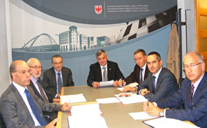 LPA - Die Überführungen der Brennerautobahn (A22) im Unterland waren wichtiges Gesprächsthema bei einem Treffen von Bautenlandesrat Florian Mussner mit den Vertretern der A22 Präsident Walter Pardatscher, Geschäftsführer Paolo Duiella und technischem Direktor Carlo Costa. Diskutiert wurde auch über eine Konvention zwischen der A22 und dem Landesstraßendienst zur Instandhaltung der Überführungen.