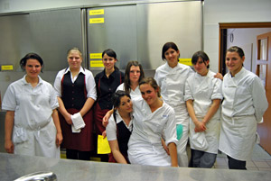 Die Schülerinnen befassten sich deshalb mit den Südtiroler Qualitätsprodukten Äpfel, Apfelsaft, Beeren, Brot, Gemüse, Grappa, Heil- und Gewürzpflanzen, Honig, Milch, Speck, Wein. Auch mit den Gesetzesparagraphen zum Schutz dieser Südtiroler Qualitätsprodukte setzten sie sich auseinander. Der Höhepunkt der Woche war ein Festessen mit regionalen und saisonalen Produkten für geladene Gäste. Die Schülerinnen kochten feine Gerichte wie Ronensuppe mit Quark-Krennocken, Schüttelbrotbandnudeln mit Graukäse, Weißkraut-Speckstrudel, Rindswangen vom heimischen Rind in Lagreinsoße und einen himmlischen Apfelstrudel mit Grappaschaum und Honigparfait, dazu kredenzten sie Gewürztraminer und Lagrein aus Tramin.