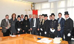 Mittlerweile ist es schon zu einer Tradition geworden und die Kaminkehrer beehren die Landesregierung regelmäßig bei ihrer letzten Sitzung im Jahr, um die besten Glückwünsche für das neue Jahr zu überbringen. Auch heute (30. Dezember) stattete eine kleine Kaminkehrer-Abordnung dem Landeshauptmann und den acht Landesräten einen Besuch ab.
