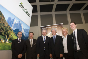 Das Südtiroler Genussfestival vom 2. bis zum 5. Juni 2011, bei dem die Südtiroler Qualitätsprodukte in Bozen an über 80 Ständen ihren Auftritt haben, wurde heute bei einem Pressefrühstück auf der ITB vorgestellt. „Ich bin ein Fan von Südtirol und das sage ich nicht aus Höflichkeit.“, so die Aussagen des regierenden Bürgermeisters von Berlin Wowereit, der seine Freundschaft zu Südtirol hervorhob. Mit dabei waren bei der Vorstellung des Genussfestivals am Südtirol-Stand neben Landesrat Berger und dem Berliner Bürgermeister Wowereit der Direktor des Südtiroler Speck Consortiums Michael Desaler, die Biobäuerin Christine Viertler, der Präsident der SMG Reinhold Marsoner und der Präsident des Konsortiums Südtiroler Wein Armin Dissertori.