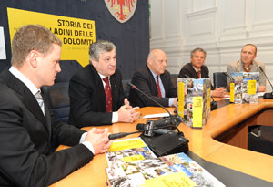 LPA - Auf 760 Seiten gibt ein neu erschienenes italienisches Buch zur Geschichte der Dolomitenladiner einen umfassenden Überblick über die Geschichte und Kultur der Ladiner rund um den Sellastock. Im Beisein von Landeshauptmann Luis Durnwalder und Ladinerlandesrat Florian Mussner hat der Autor Werner Pescosta das vom Land mitfinanzierte Buch heute, 24. März, in Bozen vorgestellt. Es solle die Geschichte der Ladiner nicht nur den Ladiner selbst, sondern allen Südtirolern vermitteln, so Durnwalder und Mussner.