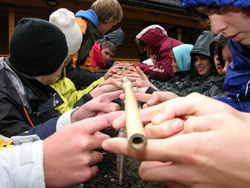 Im Rahmen des Projekts "Dialog mit der Natur" beschäftigen sich die Schulklassen, unterstützt von qualifizierten Trainern sowie den jeweiligen Lehrpersonen, mit grundlegenden Bereichen der individuellen Entwicklung und des sozialen Miteinanders. Dabei wird fünf Tage lang gruppendynamisch im Aktionsraum Natur gearbeitet. Die Schülerinnen und Schüler beschäftigen sich dabei mit Themen wie gegenseitiger Respekt, das Wahrnehmen persönlicher Grenzen, das Erkennen eigener Stärken, das Annehmen der Schwächen sowie das Akzeptieren verschiedener Meinungen und Standpunkte.