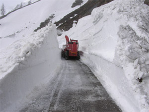Die Timmelsjochstraße als eine der höchstgelegenen Passstraßen in den Alpen ist in den Wintermonaten für den Verkehr gesperrt. Wie jedes Jahr haben auch im heurigen Jahr die Arbeiten zur Schneeräumung der Timmelsjochstraße bereits Anfang April begonnen. Dabei stellen die Arbeiten der Schneeräumung lediglich einen kleinen Teil des Arbeitsumfanges dar. Nach dem vollzogenen Durchbruch bis auf die österreichische Seite der Passstraße müssen die angrenzenden Felshänge gesäubert, die durch die anfallenden Schneemaßen zerstörten Mauern wiedererrichtet, der Asphaltbelag ausgebessert, die Fahrbahn gereinigt und die im Herbst abgebauten Sicherheitseinrichtungen wie Leitpflöcke, Verkehrsschilder usw. wieder angebracht werden. „Um den Verkehrsteilnehmern höchstmögliche Sicherheit bieten zu können, werden alle Arbeiten mit der größten Sorgfalt ausgeführt und erst dann geben wir die Straße für den Verkehr frei“, unterstreicht Landesrat Mussner.