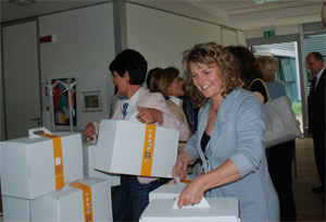Eine Anstecknadel in der Form eines Viererklees soll das Ehrenabzeichen für die Freiwilligenarbeit im Sozialwesen und im Gesundheitswesen sein. „Wichtig ist uns im Familien- und Sozialressort“, sagt Landesrat Theiner, „dass alle die Tausende Frauen und Männer in den Gemeinden Anerkennung finden, die ihren Freiwilligeneinsatz im Stillen leisten“. Allein im Sozialwesen gibt es 3000 erfasste Freiwillige Helfer, deren Einsatzgebiete weit gefächert sind, von Pflege- und Betreuung von Kranken, Senioren, Kindern bis hin zum Einsatz für Obdachlose und Hilfe in sozialen Notfällen. Zahlenmäßig nicht erfassbar seien alle jene Leistungen, die außerhalb organisierter Vereine und Dienste in der Nachbarschaftshilfe oder im persönlichen Bereich geleistet würden, betont der Landesrat. Theiner überreichte dem Präsidenten des Gemeindenverbandes Arno Kompatscher stellvertretend für alle versammelten Gemeindevertreter den ersten Freiwilligen-Glücksbringerkoffer. Aus den Reihen der Gemeindevertreter erntete die Initiative zur Ehrung der Freiwilligenarbeit regen Zuspruch. Im Laufe des Jahres würden in Zusammenarbeit mit den Gemeinden weitere Zeichen gesetzt, um die Freiwilligenarbeit auch über das Jahr 2011 hinaus anzuerkennen und damit auch für sie zu werben, so Theiner.
