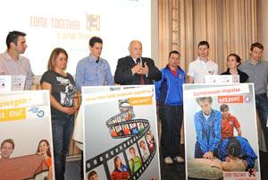 LPA - Das junge Ehrenamt zu würdigen und für den ehrenamtlichen Einsatz Jugendlicher zu werben, ist das Ziel einer Plakat-Kampagne des Landesamtes für Kabinettsangelegenheiten und des Südtiroler Jugendrings. Landeshauptmann Luis Durnwalder und SJR-Vertretende haben heute (6. Mai) im Bozner Stadttheater Bausteine und Inhalte der Kampagne vorgestellt.