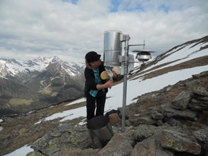 Mit Luft- und Niederschlagssammlern sowie Bodenproben wird der Zustand in ökologisch empfindlichen Höhenlagen der Alpen bestimmt und mit Ergebnissen aus dem Schwarzwald und dem Taunus in Deutschland verglichen.
