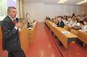 Aus unterschiedlichen Blickwinkeln gingen namhafte Referenten auf die Herausforderungen ein, vor die der Wandel der Gesellschaftsstruktur vor allem den Arbeitsmarkt stellt. Zukunftsforscher Karlheinz Steinmüller befasste sich damit, wie die Zukunft aussieht und wie an sie herangegangen werden muss. "Man kann die heutige Situation nicht einfach in die Zukfunft projezieren, sondern es gibt viele Faktoren, die den künftigen Verlauf der Dinge beeinflussen", so Steinmüller. Die Zukunftsforschung zeige, wie der Blick in die Zukunft ausgehend von einem Blick in die Vergangenheit möglich ist. Dass viele sozialen und technologischen Veränderungen unvorhersehbar seien und damit die Zukunft ungewiss bleibt, sieht Steinmüller nicht negativ: "Immerhin ist es diese Ungewissheit, die ein Handeln erst möglich macht."