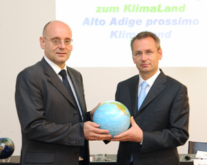 Den Wandel hin zum Besseren sieht Laimer im Ausbau der erneuerbaren Energien, im Abbau der fossilen Energieträger, in der Verbesserung der Energieeffizienz und schließlich in der intelligenten Nutzung der Energie. Landerat Laimer: „Damit die Klimastrategie aufgeht, wollen wir alle mit einbeziehen und eine Nachhaltigkeitskultur in der Gesellschaft verankern. Nur so kann es gelingen, den Energiebedarf zu senken und diesen durch Alternativenergien abzudecken.“ 2008 ist der Südtiroler Energieverbrauch zu 23,8 Prozent durch Strom, zu 7,4 Prozent durch Mineralölprodukte (ohne Verkehr), zu 24,8 Prozent durch Erdgas, zu 11,6 durch Biomasse und zu 1,7 Prozent durch sonstige erneuerbare Energieformen (Fotovoltaik, Biogas, usw.) gedeckt worden. Der Verkehr hat am Gesamtverbrauch einen Anteil von 30,8 Prozent. „Seit 2008 ist der Anteil der erneuerbaren Energie von 1,7 Prozent auf ca. drei bis vier Prozent angestiegen. Mit den 17.700 Solaranlagen, den über 4100 Fotovolataikanlagen und den 930 Wasserkraftwerken sind wir im gesamtstaatlichen und im internationalen Vergleich gut aufgestellt. Einzig im Bereich Geothermie haben wir Aufholbedarf“, so Laimer. Der Landesrat wies im Besonderen auf das Erfolgsmodell Klimahaus hin: „Das Klimahaus zeigt, dass man mit innovativen Konzepten auch im Bereich Energieffizienz erfolgreich sein kann, auch ökonomisch erfolgreich.“ Mit Stand 2011 werden durch die 3100 Klimahäuser 16000 Tonnen weniger CO2 produziert. Bis 2050 soll nicht nur der Pro-Kopf-Ausstoß von CO2 auf 1,5 Tonnen pro Jahr gedrückt werden, gleichzeitig soll der Anteil der erneuerbaren Energien am Gesamtverbrauch von derzeit 49 auf über 90 Prozent geschraubt werden.